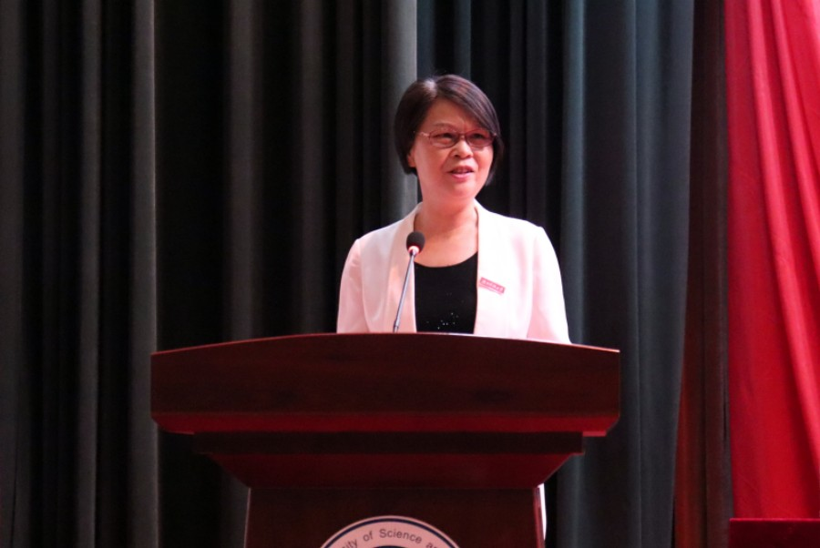 禹旭才以《心怀“国之大者”,争当“国之大才”》为题发表讲话,结合“唯实惟新,至诚致志”的科大校训,鼓励新生们从大处着眼,从小处着手,胸有“至诚心”,怀揣“致志情”,脚踏“唯实路”,书写“惟新篇”。她说道:“请同学们用实际行动诠释‘我命由我不由天’的豪情壮志,用实际行动证明‘请党放心 强国有我’的时代担当,在思想淬炼、专业训练、实践锻炼中成长为硬核潇湘人!”
