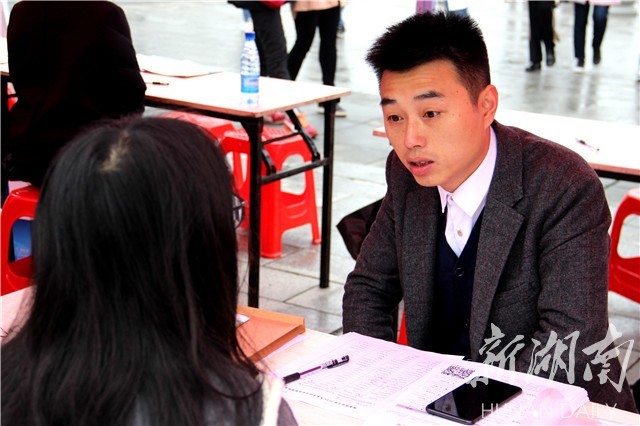 湖南理工学院英语师范专业的2017届毕业生彭鸣艳,从手机微信端推送得知此次招聘会的信息后,提前一天从怀化来到该校做准备。相较于初出茅庐的应届生来说,彭鸣艳已经有了一年的工作履历,对于下午即将到来的面试,彭鸣艳不无自信,“专业技能证书英语专业八级已经过了,这一年来为了更好地迎接工作的挑战,阅读了与心理咨询相关的书籍,祝福自己可以顺利通过HR的面试。”彭鸣艳笑到。