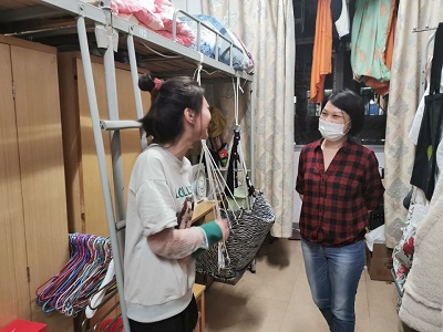 在八区10栋毕业生宿舍里,周光明代表学院欢迎毕业生们顺利返校,并仔细询问学生口罩、温度计、各类生活物品是否足够,以及学生就业意愿、毕业后的去向、毕业答辩等情况。周光明叮嘱道:“在这个特殊时期里,大家一定要做好自身疫情防控防护措施,每天定时测量体温、按时健康打卡、少聚集、少串寝。”走访中,周光明嘱咐毕业生要树立“先就业后择业”的就业观念,毕业后常回母校看看,关心学校的发展,并不时叮嘱随行老师要时刻留意毕业生思想动态,主动解决毕业生切实困难。