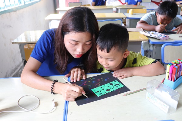 新葡萄官网AMG暑期三下乡支教团队还在教学课堂上采取了奖励制度,对勇敢表现自己的小朋友奖励小红花。一天支教课程结束后,小朋友们可以根据小红花的数量排名获得志愿者老师们准备的不同奖品,这增加了孩子们上课的积极性,也让孩子们在课堂上更加踊跃的去表现自己。在获得了知识的同时,也使自己变的更加自信,朝着更高的人生目标迈进。 “我获得了7颗小红花啦呢!”今年10岁的唐桂林在上完美术课后兴奋的说道。尽管一天的课程已经结束,但还有几个小朋友仍坐在课桌上写着语文老师写在黑板上的古诗。
